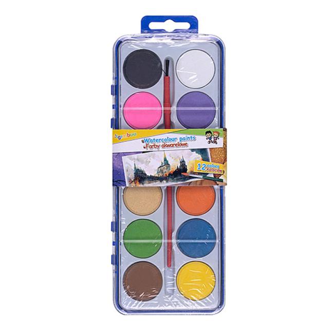 Akvarelové farby so štetcom GIMBOO, 12 farieb