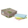 Samolepiace poznámkové bločky zo 100% recyklovaného papiera gramáže 70 g / m². V balení 12 ks v štyroch dúhových farbách po 3 ks v papierovom boxe. Rozmery 38 x 51 mm.