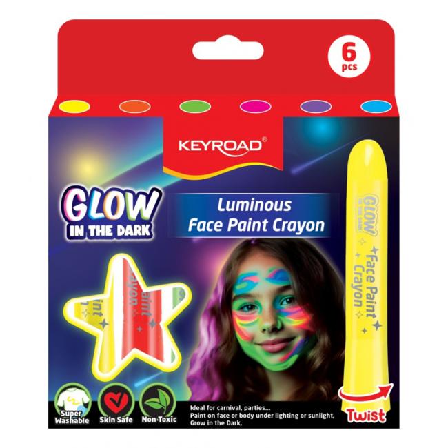 Ceruzky na tvár KEYROAD svietiace, 6 ks, v boxe, mix farieb