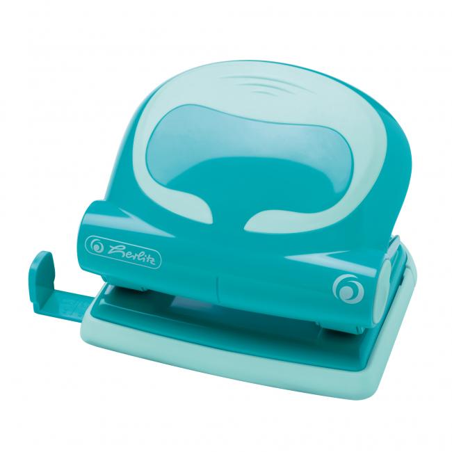 Dierovačka Color Blocking 2mm – ergonomický tvar, plastovo-kovová. Normovaná vzdialenosť 80 mm. Kapacita dierovania 25 listov. Dištančné podložky možno ľahko vyprázdniť, atrakitívny dizajn. Farba karibská tyrkysová.
