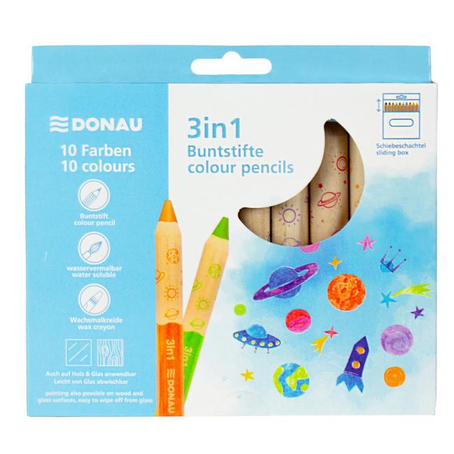 Farbičky DONAU 3v1 – farbička, pastelka a voskovka, 10 ks, mix farieb