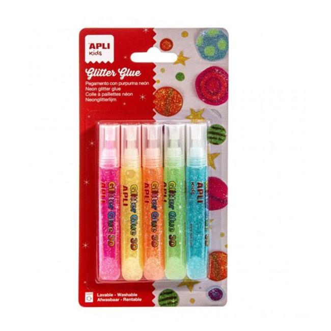 Glitrové lepidlo v rôznych neónových farbách: fuchsiová, žltá, oranžová, zelená a modrá. Balenie obsahuje 5 injekčných liekoviek, jednu na farbu, každá po 13 g. Produkt sa ľahko používa vďaka flexibilnej fľaštičke a dávkovacej špičke, ktorá umožňuje presnejšiu aplikáciu. Ideálne na lepenie alebo zdobenie: naneste priamo na povrch, ktorý chcete ozdobiť a nechajte na vzduchu sušiť aspoň 30 minút. Odporúča sa na rôzne typy povrchov: papier, kartón, EVA pena, sklo, plast, textil, drevo alebo keramika. Veľmi čistý produkt, možno prať v práčke v programoch teplej vody