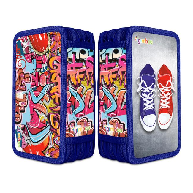 Peračník Gimboo 3-zipsový plný, Graffiti, modrý, 10 ks
