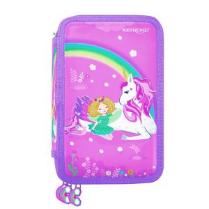 Peračník 2-klopý s výbavou, vnútorná podšívka: farebná. Výbava: 14 fixiek, 8 šesťhranných pasteliek, 2 ceruzky šesťhranné, 1 plastové strúhadlo, 1 guma, 1 plastové pravítko 16 cm, 1 trojuholníkové pravítko, 1 guľôčkové pero, 1 rozvrh hodín, 1 vizitka. Dizajn: Morský koník.