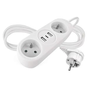 dĺžka: 1,5 m, počet zásuviek: 5× 2P + PE, max. záťaž: 3 680 W, napätie: 230 V, prúd: 16 A max., prierez vodiča: 1,0 mm², farba: biela/čierna, vodič: H05VV-F3G, materiál zásuvky a vidlice: plast, typ izolácie: PVC, vypínač, krytie: IP20, detské clonky, záručná doba: 2 roky, predajný obal: 1 ks, krabica