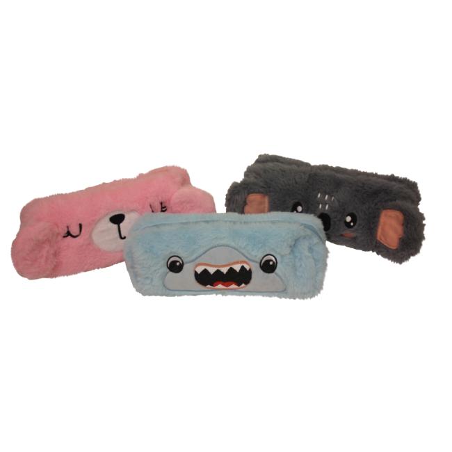 Puzdro na perá s 1 zipsom, 3 rôzne vzory/farby, plyšový materiál, s vyšívanými tváričkami zvieratiek a podšívkou. Rozmery ŠxVxH: 20,5x5x7 cm