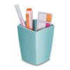 Stojan na časopisy s možnosťou vertikálneho alebo horizontálneho postavenia má elegantné línie, zvýraznené materiálom s kontrastným matným povrchom na hladkom pozadí. Vhodný na dokumenty do veľkosti 24 × 32 cm. Kapacita 700 listov (80 g / m²), rozmery 270 × 85 × 310 mm. Materiál 100% recyklovateľný vysokokvalitný plast. Väčšie balenie 10 ks. Farba modrá.