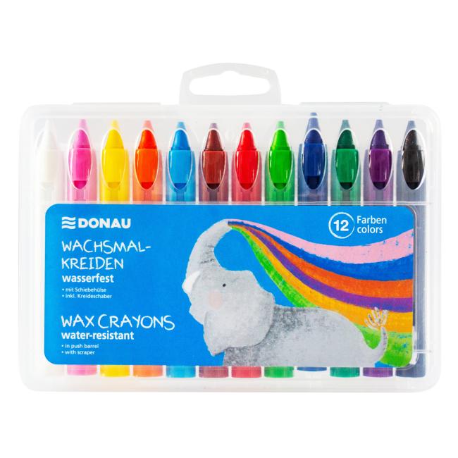 Voskové pastelky DONAU v puzdre, vodeodolné, 12 ks, mix farieb